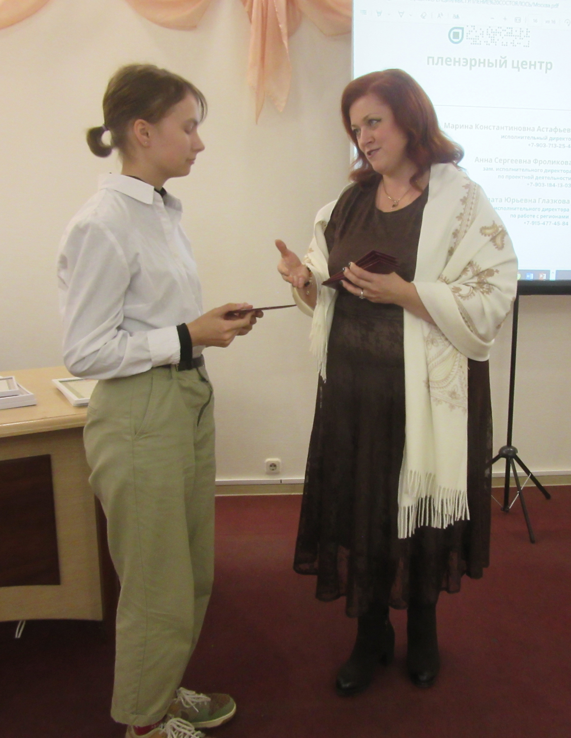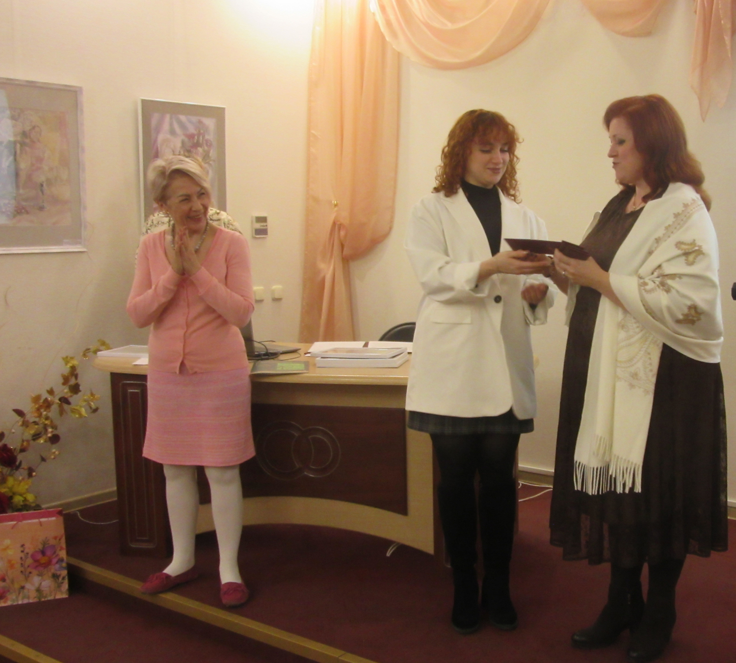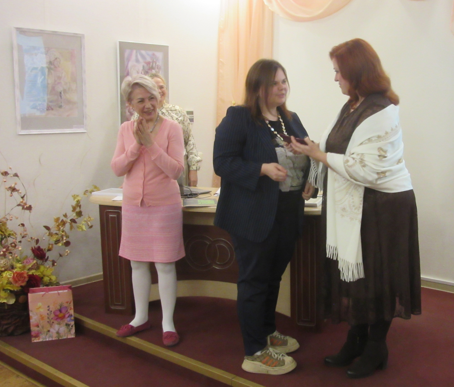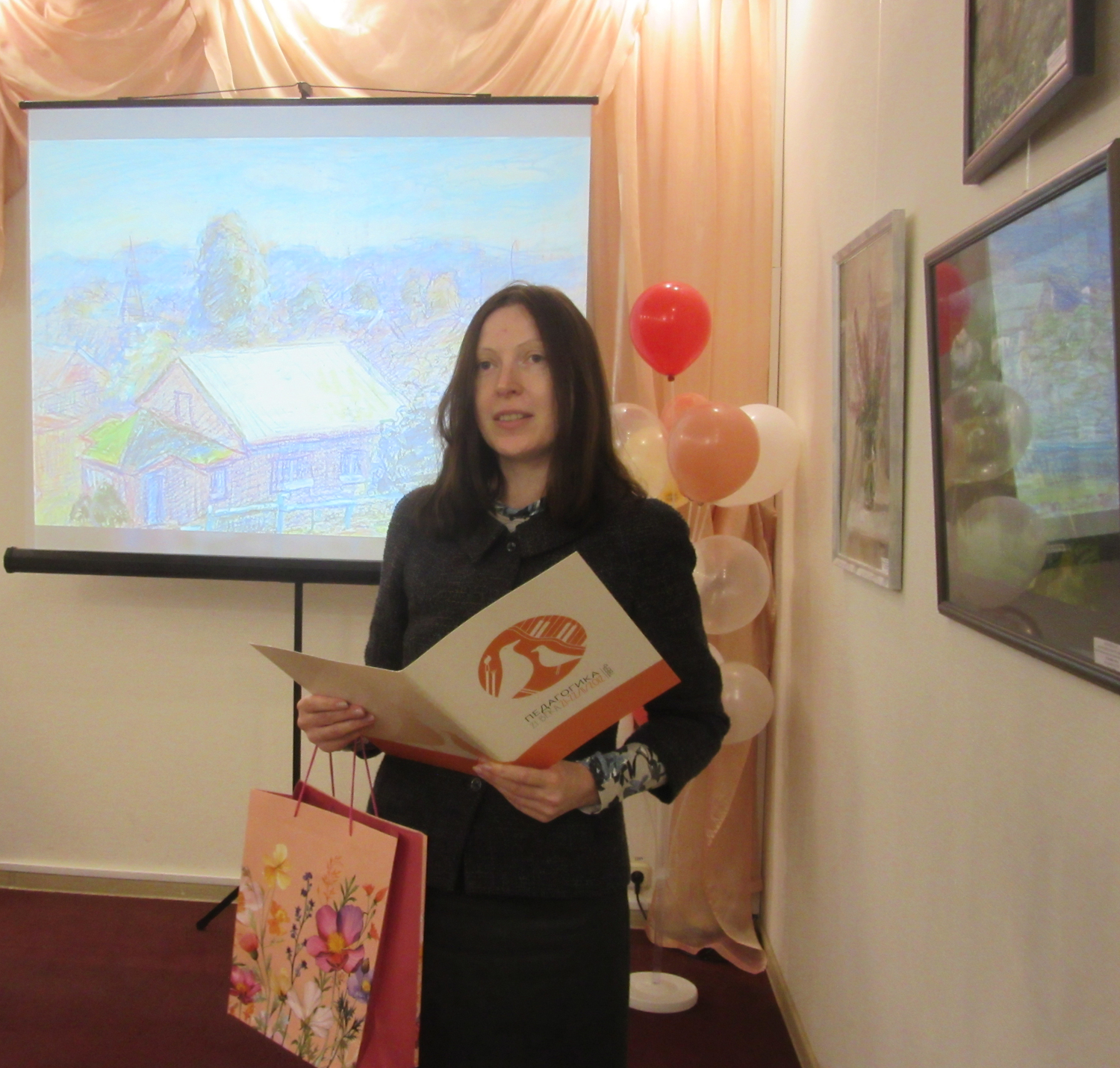 Поздравила молодых преподавателей со вступлением в Союз педагогов-художников и вручила новым членам удостоверения!
