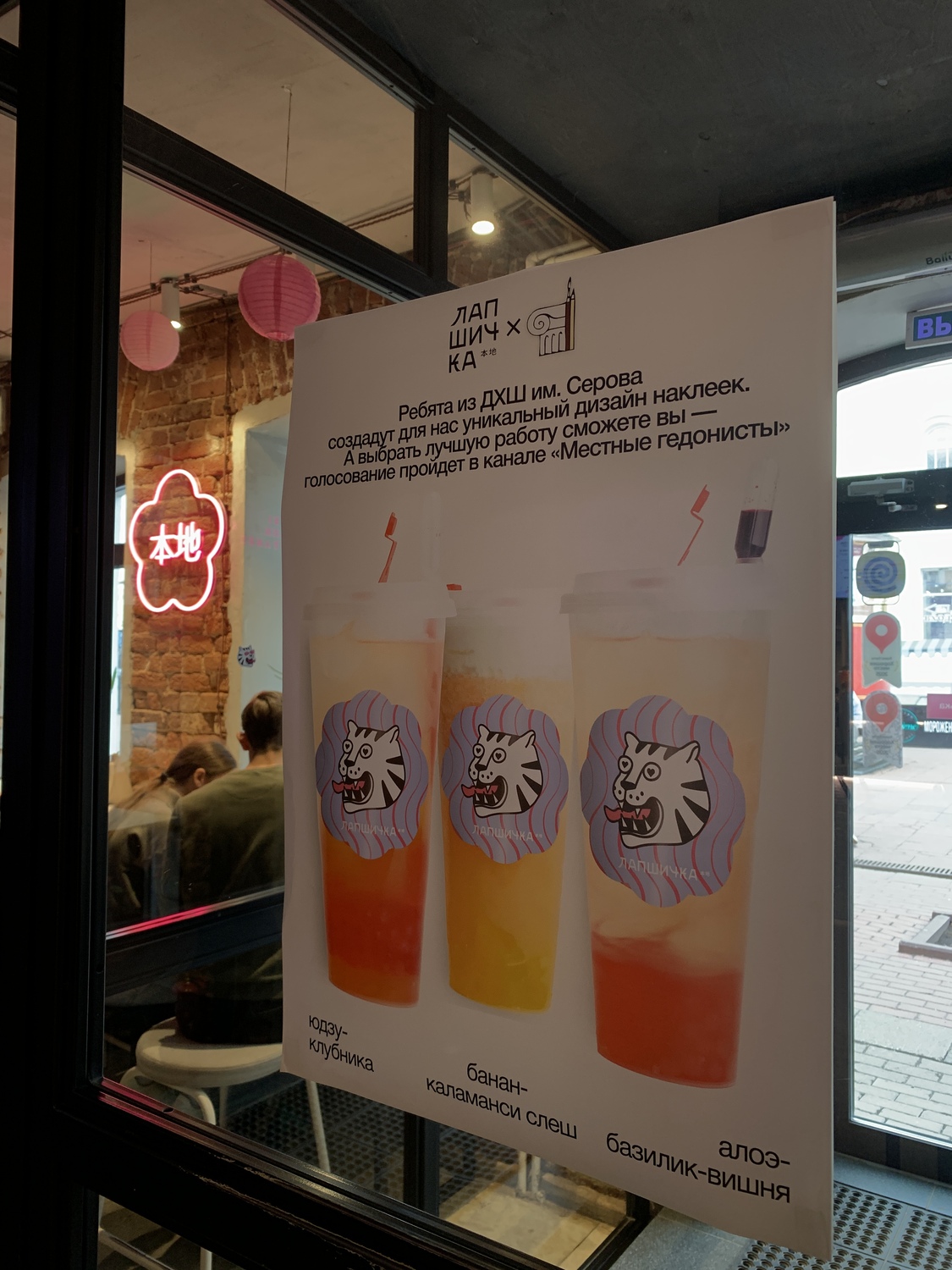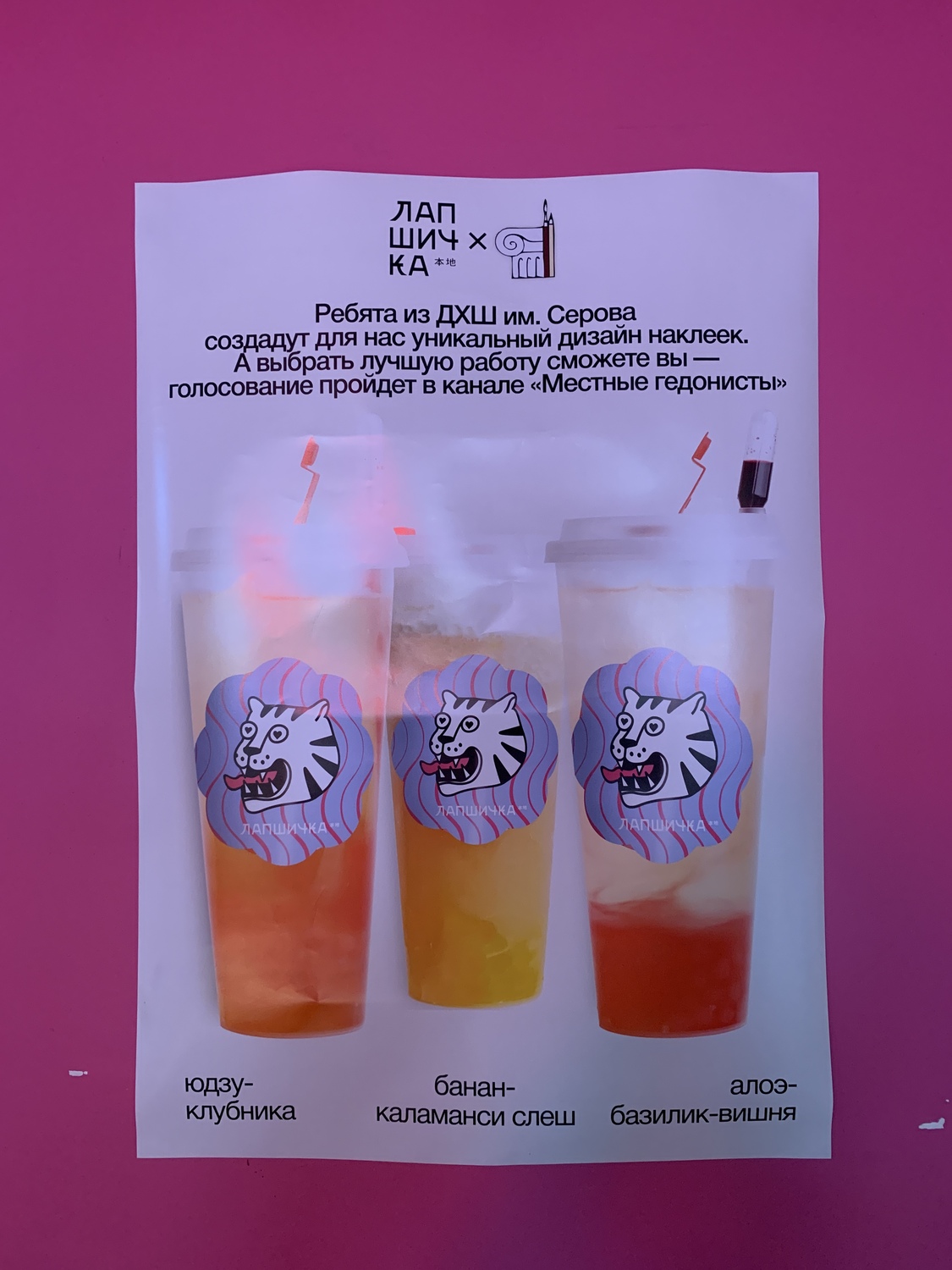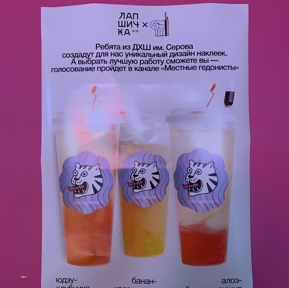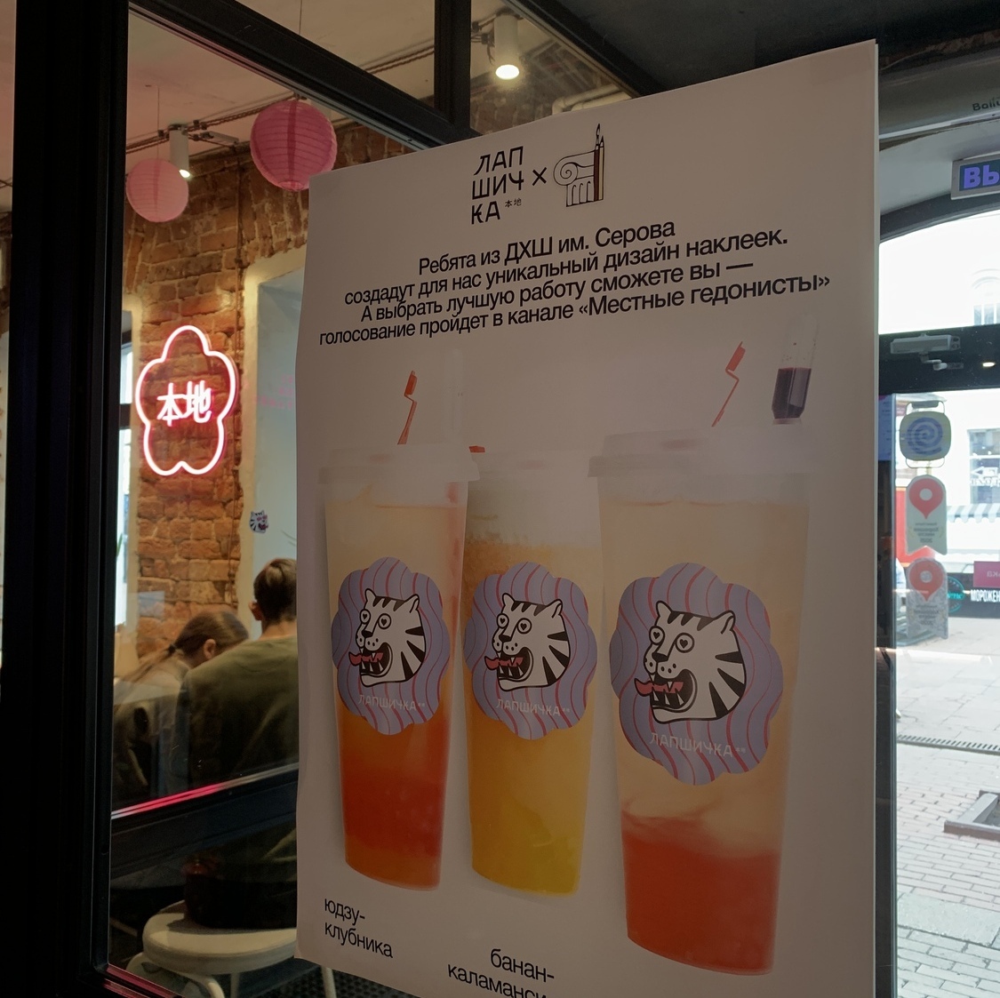 Так появилась концепция: мы решили предложить ребятам разработать наклейку в стиле «Лапшички» — ту, которую наши гости ежедневно видят на стаканах и упаковке.