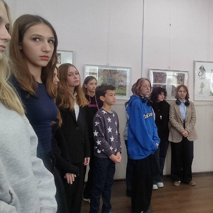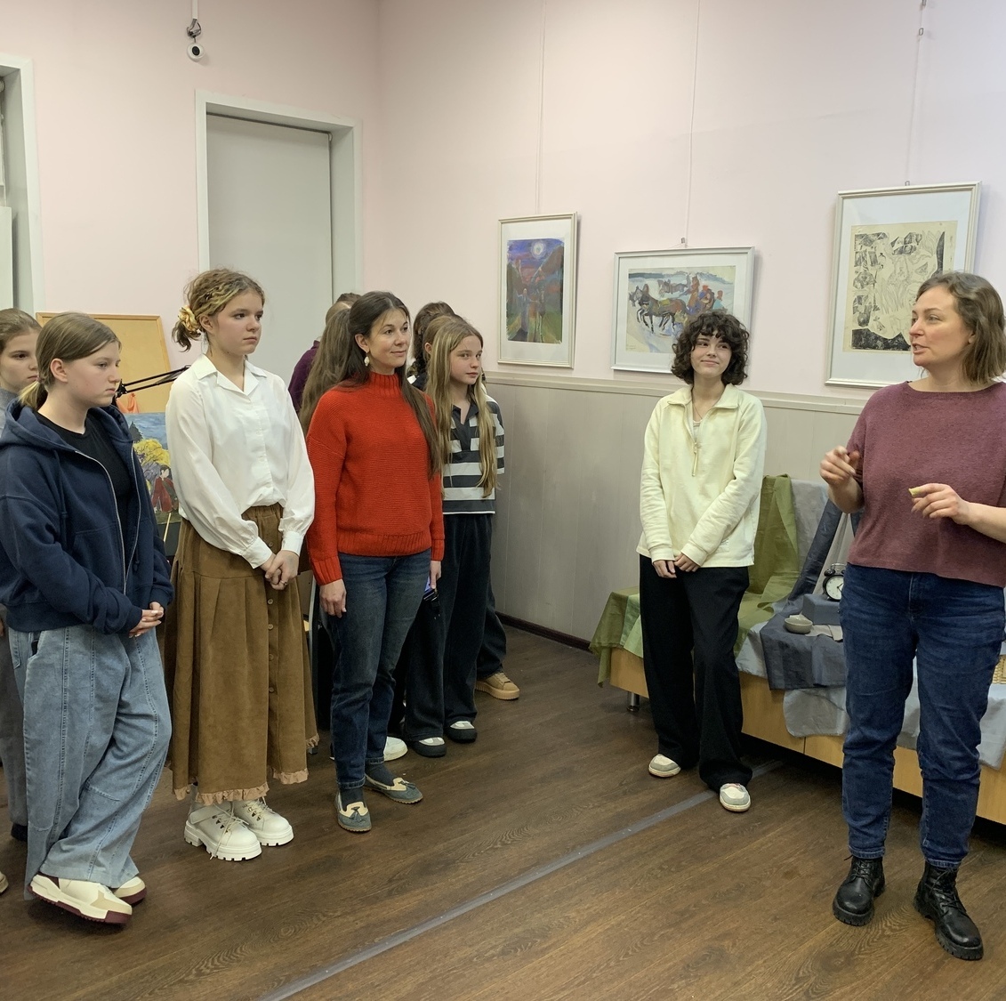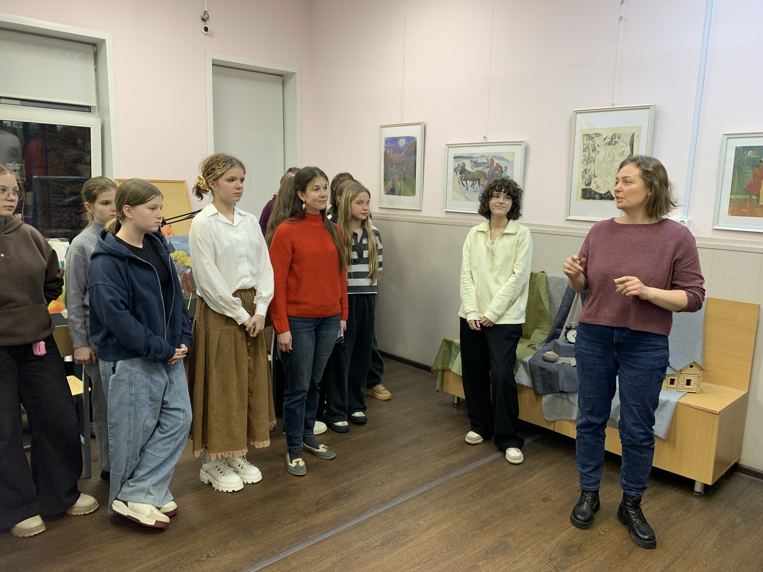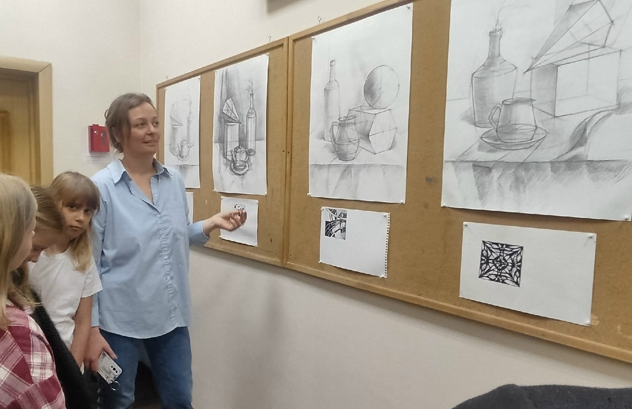 На открытие выставки учащимся рассказали историю созданию школы, о трудностях и возможностях учащихся и преподавателей в послевоенное время. Об отношении к возможности - реализовывать творческий потенциал.