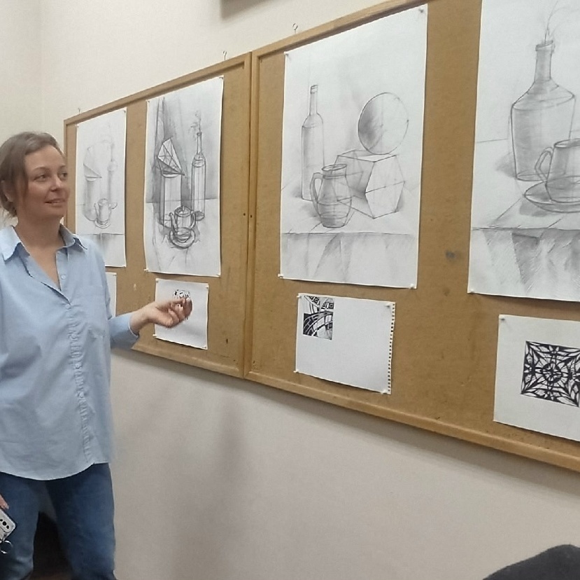 Открыла выставку – заведующая отделение Алена Сергеевна Валоваго, которая в свое время была выпускницей художественной школы и получив профессиональное образование, стала преподавателем нашей школы.