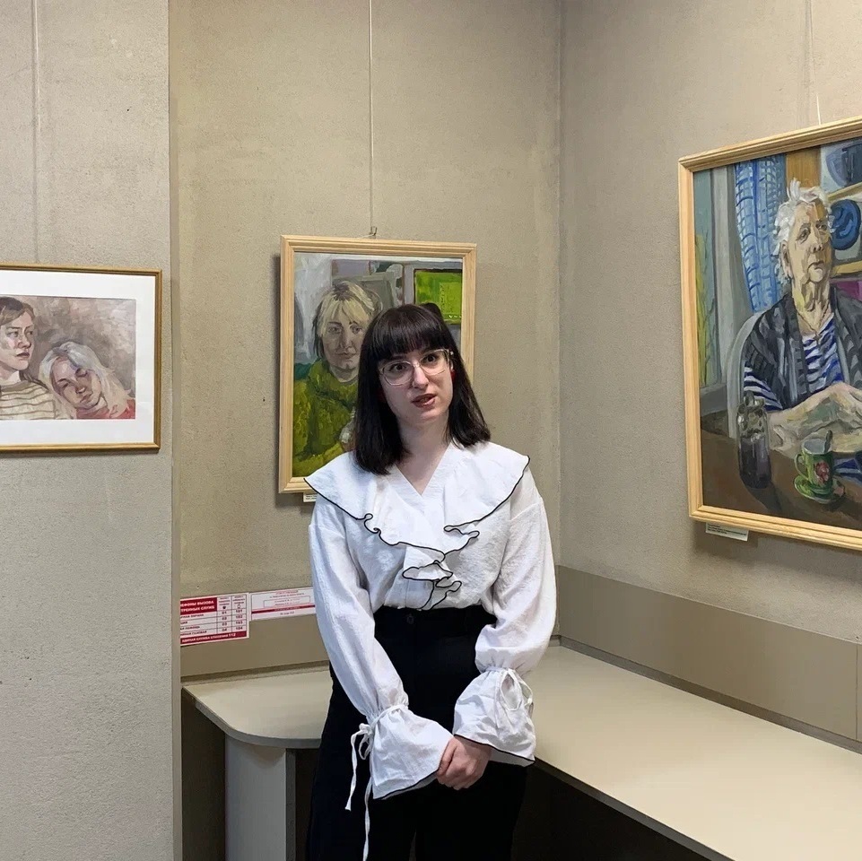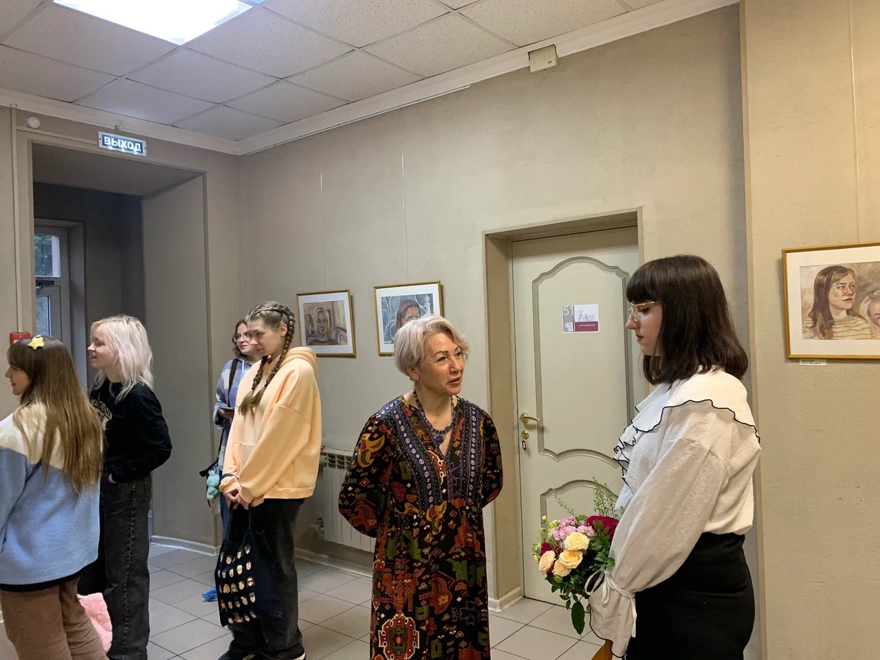 Открыла выставку директор школы, заслуженный работник культуры РФ, член Союза художников России, член Союза педагогов-художников России – Ирина Федоровна Лельчицкая. Она отметила, что открытие персональной выставки – это праздник для всех наших учеников, включая и студентов Тверского Государственного университета, для родителей и для всех сотрудников нашей школы. Особенно приятно открывать эту выставку, так как Елизавету мы заметили, когда она проходила практику, обучаясь в колледже А. Г. Венецианова, в который поступила в 2020 на специальность «Средовой дизайнер-педагог». Все преподаватели, у которых она проходила стажировку отметили ее творческий подход не только к художественному творчеству, но и к педагогической практике, к детям. Елизавета ведет занятия в подготовительных группах, там нет оценок за успеваемость, но Елизавета придумала свой методический подход поощрения, чтобы стимулировать ребят в творческой деятельности. Сегодня мы открываем выставку портретов – это один из самых сложных жанров изобразительного искусства и особенно приятно, что видеть портреты родных лиц: любимых бабушки и дедушки и своих друзей