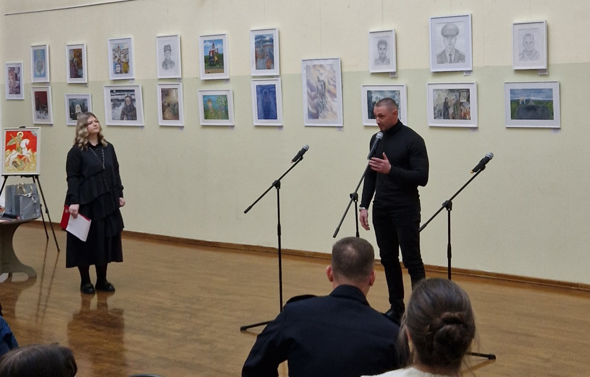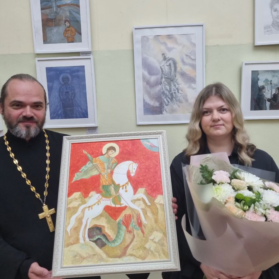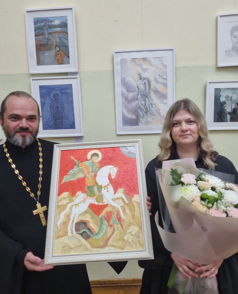 На выставку был приглашён священник Марк Зиновьев, настоятель храма в честь Великомученника и Победоносца Георгия.