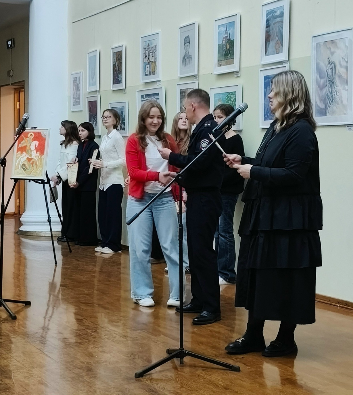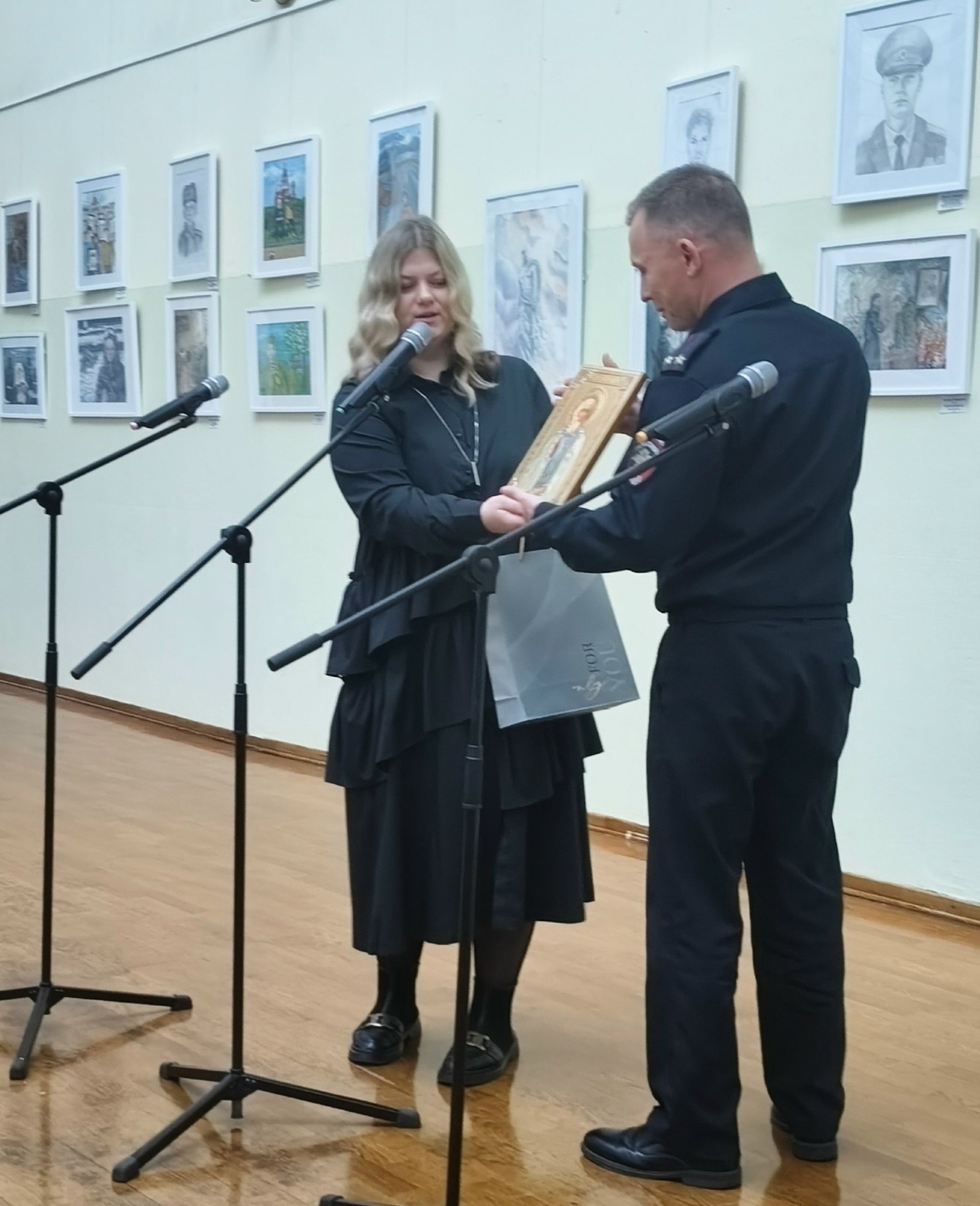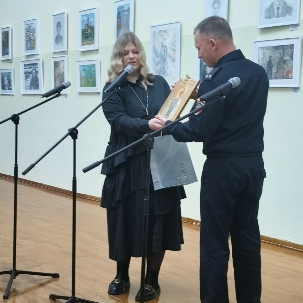 На выставку был приглашён священник Марк Зиновьев, настоятель храма в честь Великомученника и Победоносца Георгия.