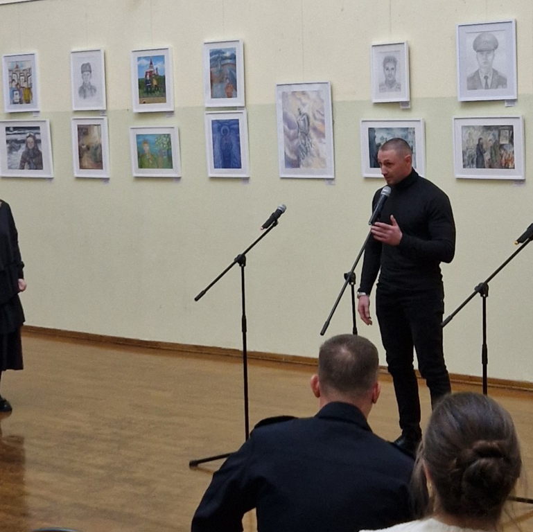 Торжественное открытие выставки посетил подполковник полиции Сергей Юрьевич Ильин начальник боевой и физической подготовки