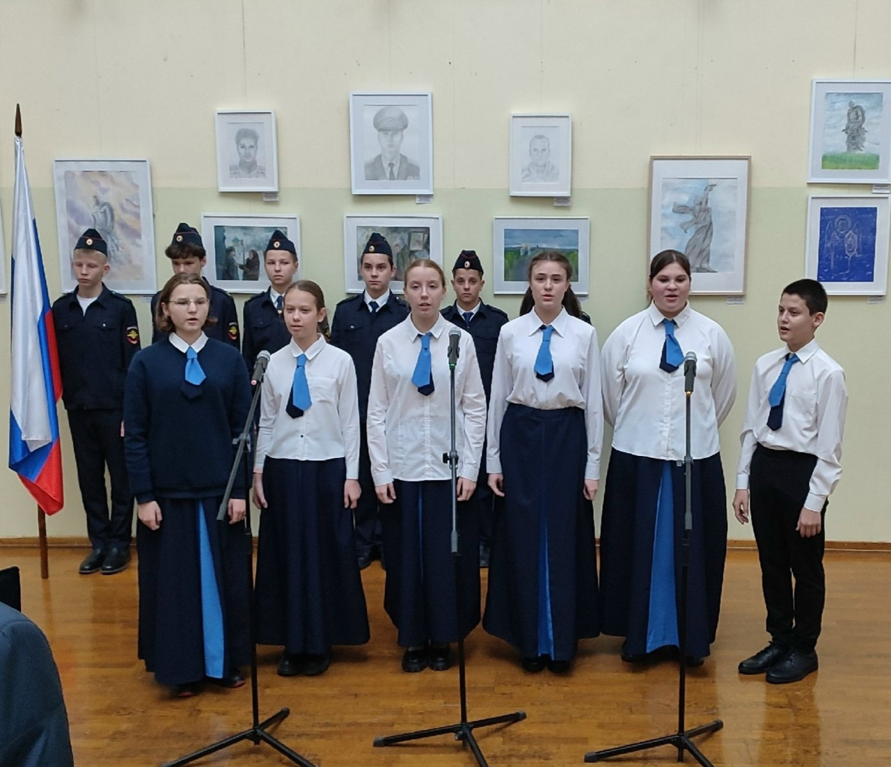 В торжественном открытии выставки "ВСТАНЕМ" приняли участие хор "Царская песня" ТЕПСОШ, ансамбль "Лествица" и танцевальный коллектив.